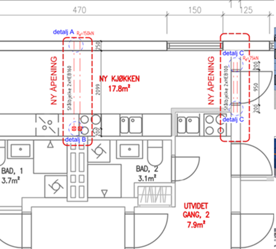 Sammenslåing av 2 leiligheter (H0301 og H0302) i 3.etg